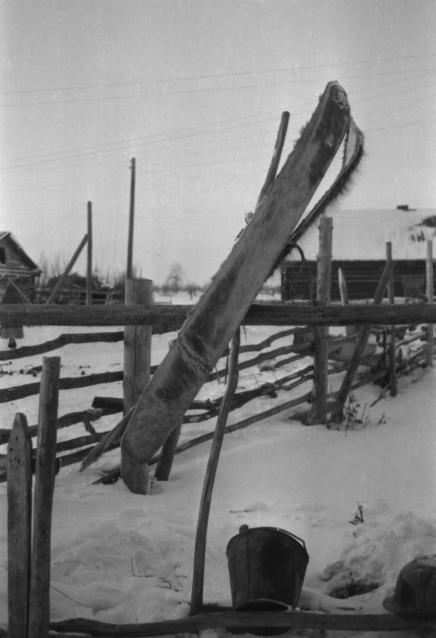 Comment (Slepenkova (Seburova) Rima Konstantinovna): Fence. Skis used for hunting. Winter....show more
