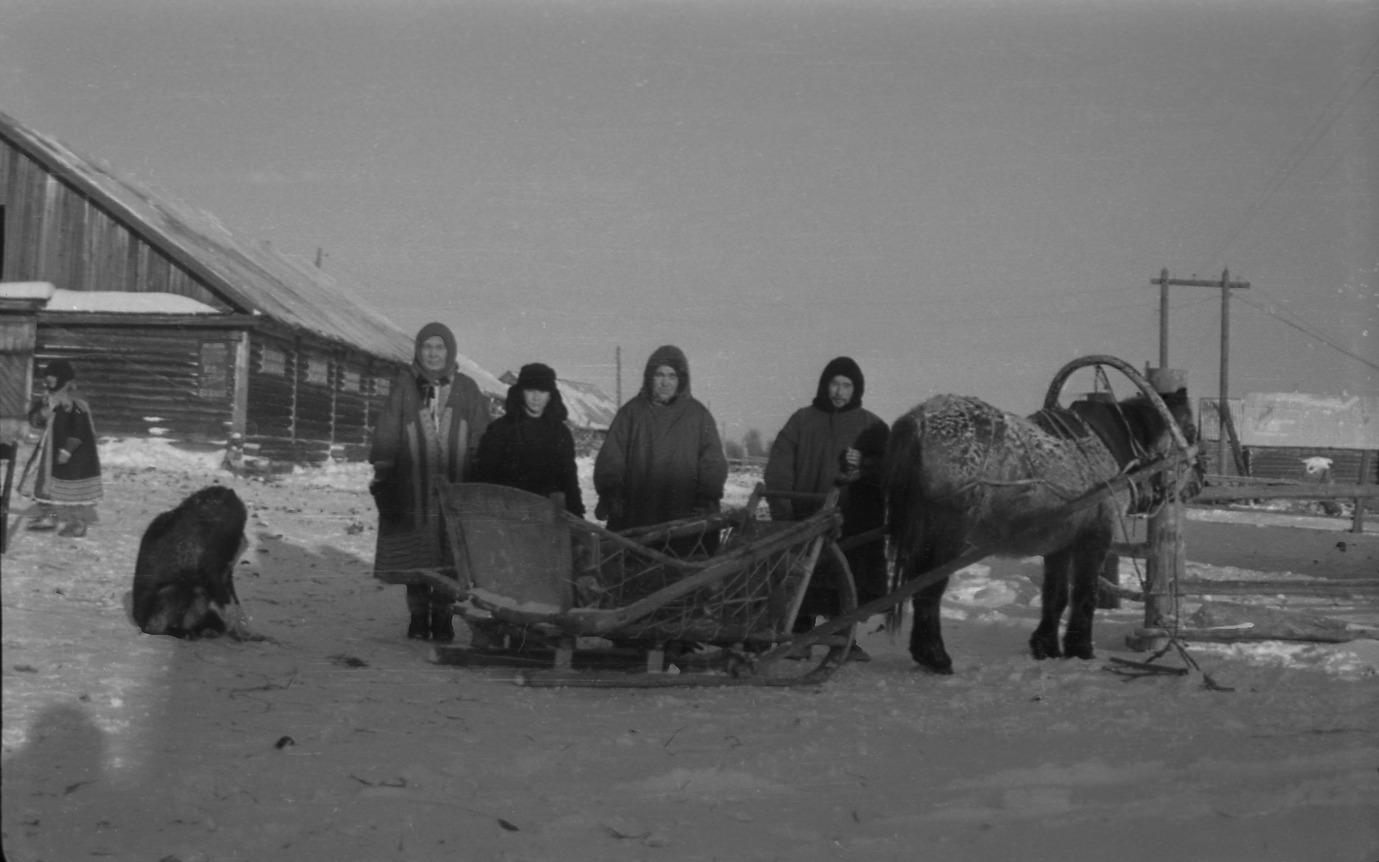 Comment (Slepenkova (Seburova) Rima Konstantinovna): The north side of the villlage, where the cattle farm of the kolkhoz is situated. Matrёna Grigor'evna Seburova with her younger brothers. She is dressed in Khanty traditional costume....show more